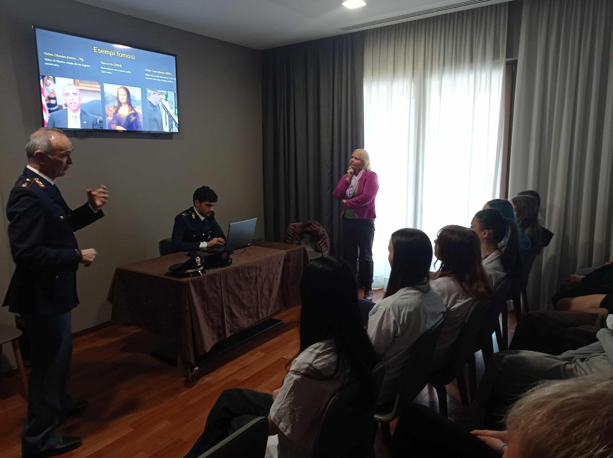 Ważnym elementem były spotkania z praktykami. Nasi uczniowie uczestniczyli w spotkaniu z włoską policją do spraw cyberprzestępczości, która przybliżyła im konkretne sprawy oszustw internetowych, sposoby działania sprawców oraz mechanizmy ochrony użytkowników. Warsztaty o roli sztucznej inteligencji w sektorze kreatywnym pokazały z kolei, że narzędzia AI mogą być zarówno ogromnym wsparciem, jak i źródłem ryzyka, jeśli odbiorca bezrefleksyjnie ufa generowanym treściom.
