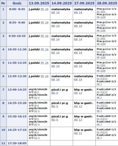 Plan lekcji szkoły zaocznej i komunikaty