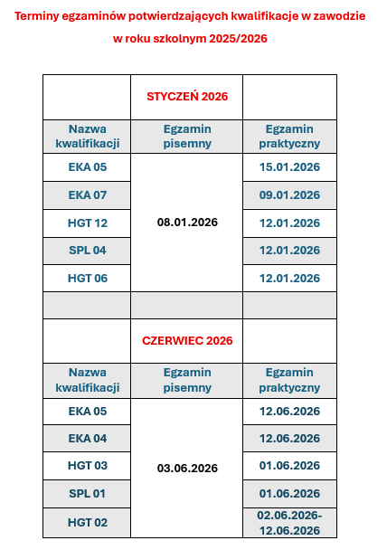 Termin egzaminów z kwalifikacji zawodowych w roku szkolnym 2025/2026