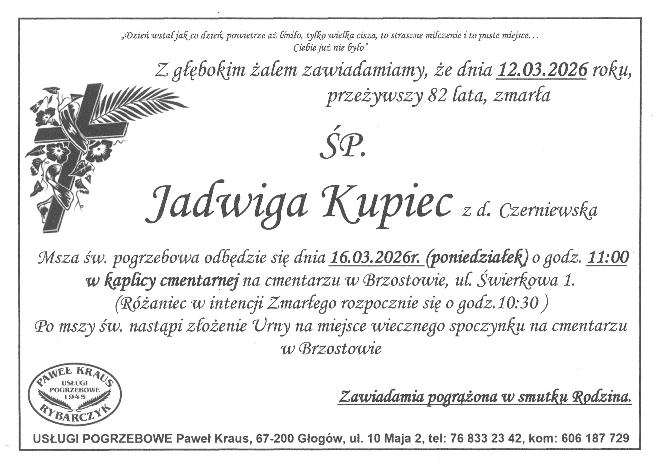 Zmarła wieloletnia i zasłużona nauczycielka Zespołu Szkół Ekonomicznych śp. Pani Jadwiga Kupiec